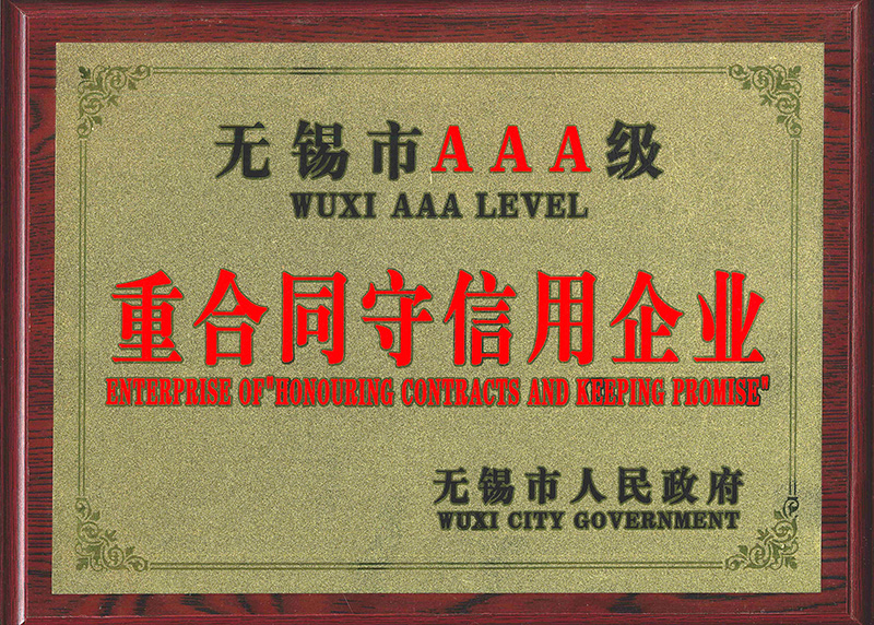 無錫市AAA級重合同守信用企業