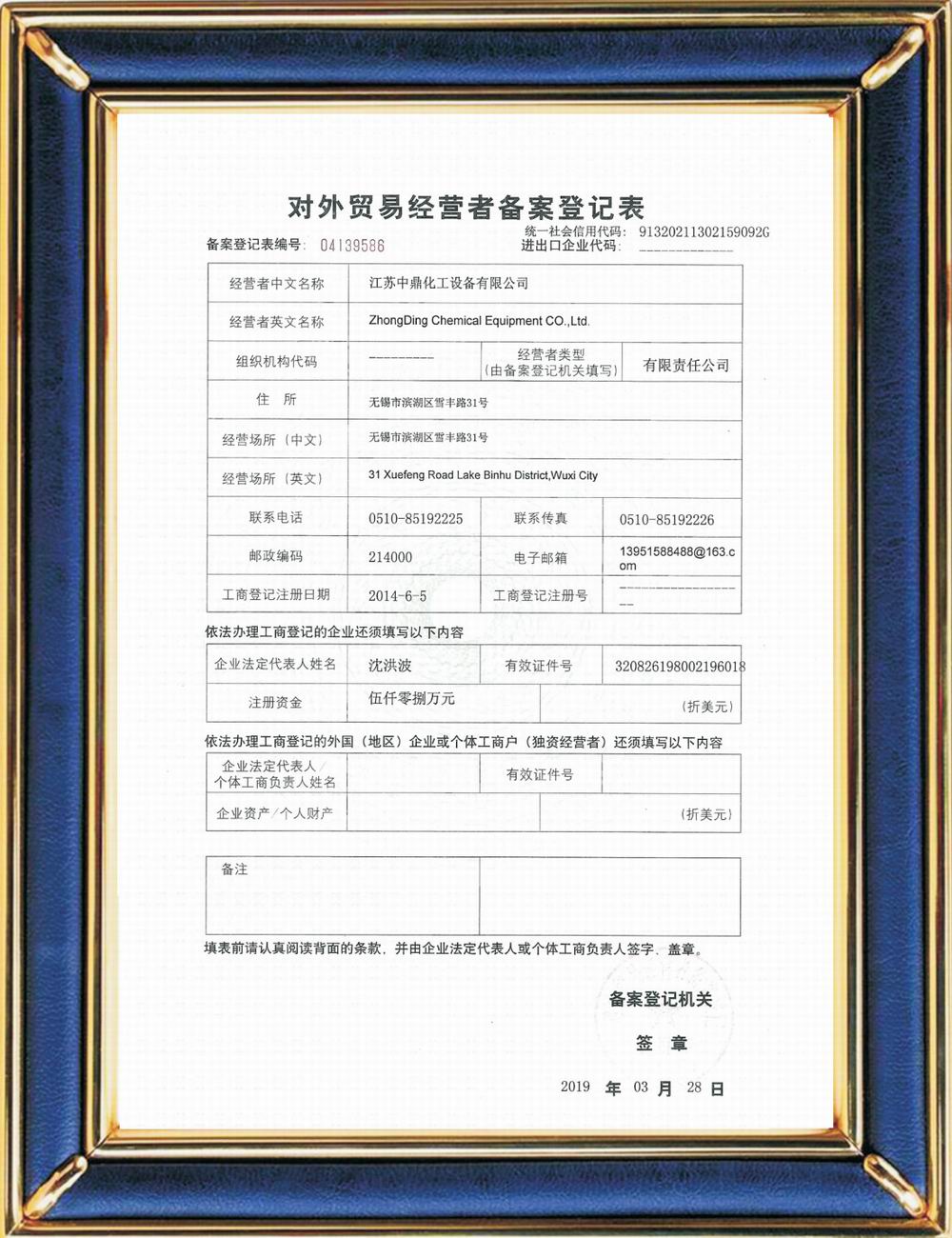 進出口/對外貿易經營者備案證