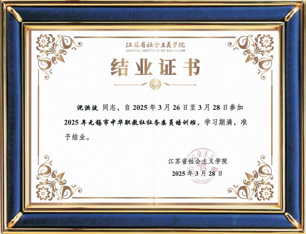 江蘇省社會主義學院培訓證書