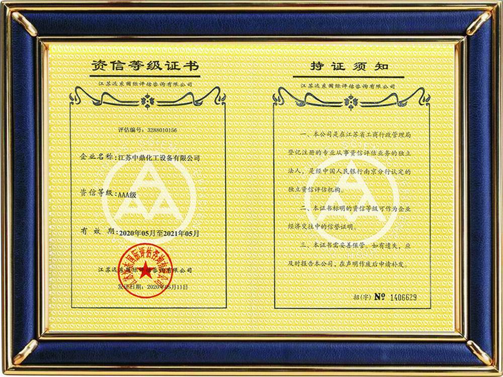 江蘇遠東AAA級資信評估證書