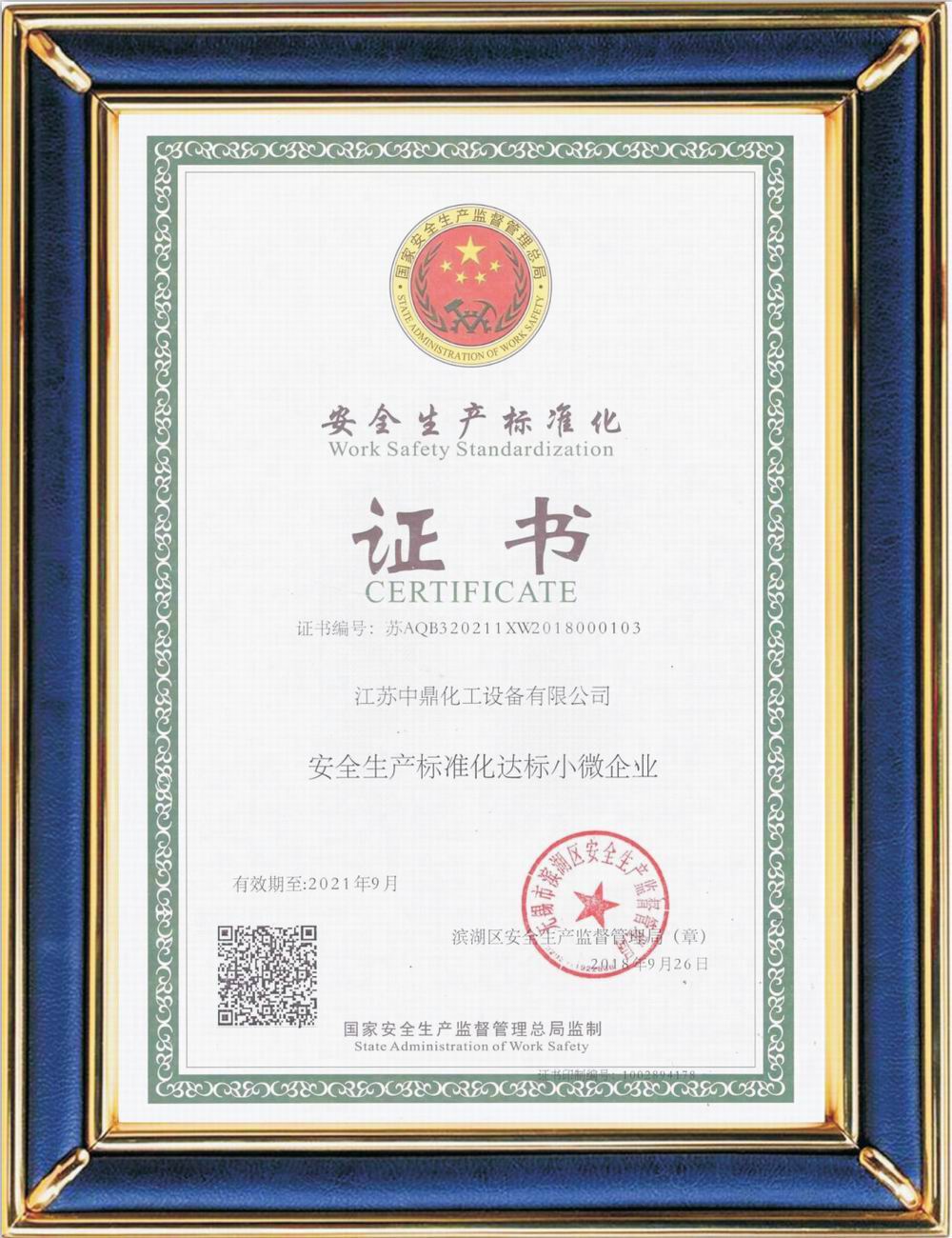 安全生產標準化證書